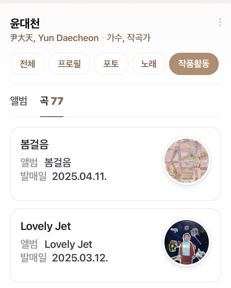 곡정보 참여곡 크레딧 작업곡 듣기