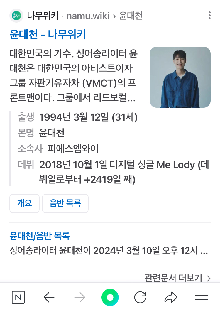 안녕하세요, 찬란한 우리의 순간을 노래하고 따뜻한 감성을 들려드리는 싱어송라이터 윤대천입니다. - 싱어송라이터 윤대천은 대한민국의 아티스트이자 그룹 자판기유자차 (VMCT)의 프론트맨이다. 그룹에서 리드보컬을 맡으며 직접 작사, 작곡, 프로듀싱하고 곡에 따라 피아노, 어쿠스틱 기타를 연주하며 다양한 아티스트들과 예술적 교류를 나누고 있다. 2018년 싱글 앨범 'Me Lody'로 솔로 데뷔 이후 다수의 솔로 앨범에 멤버들의 참여를 이끌어 다양한 색깔의 음악을 선보였으며, 그가 속해있는 그룹 자판기유자차 (VMCT)의 첫 번째 정규 앨범에 열한 곡의 트랙을 멤버들과 직접 제작, 프로듀싱해 2021년 'The Venmacitea'로 그룹 데뷔를 했다. 한편 윤대천은 2024년 열두 곡의 트랙이 담긴 정규 앨범 'Crescents'를 발매하며 "데뷔 후 결핍과 방황으로 시작해 5년간 표현해온 정열 되지 않은 작품의 산개를 한 데 모으고 태초, 근본, 순수, 처음, 시작의 의미를 지닌 '초승달'처럼 새로운 시작을 다짐했다. 모든 시작에는 본질이 있기에 곡에서 의미하는 대상은 '사람'이 될 수도, '꿈'이 될 수도, 각자가 사랑하는 '어떤 것'이 될 수도 있다"면서 "많은 사람들에게 영화 같은 순간을 느낄 수 있도록 하기를 매일 꿈꾼다. 제겐 인생의 시작과도 같았던 저의 음악이 여러분의 일상에서 어떤 형태로든 마음속 울림이 돼 함께할 수 있었으면 좋겠다"고 말했다. 차가운 음색과 따뜻한 감성, 잔잔하고 몽환적인 사운드로 목가적이면서도 웅혼한 분위기를 자아내는 매력적인 색깔을 지닌 아티스트 윤대천의 노래가 많은 이들에게 따뜻한 울림을 전하고 있다.